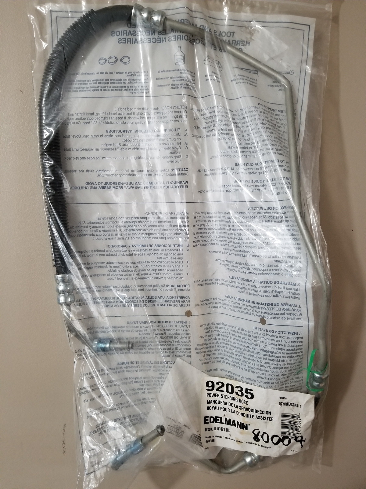 Genuine EDELMANN Power Steering Pressure HosePart# 92035 – NEW