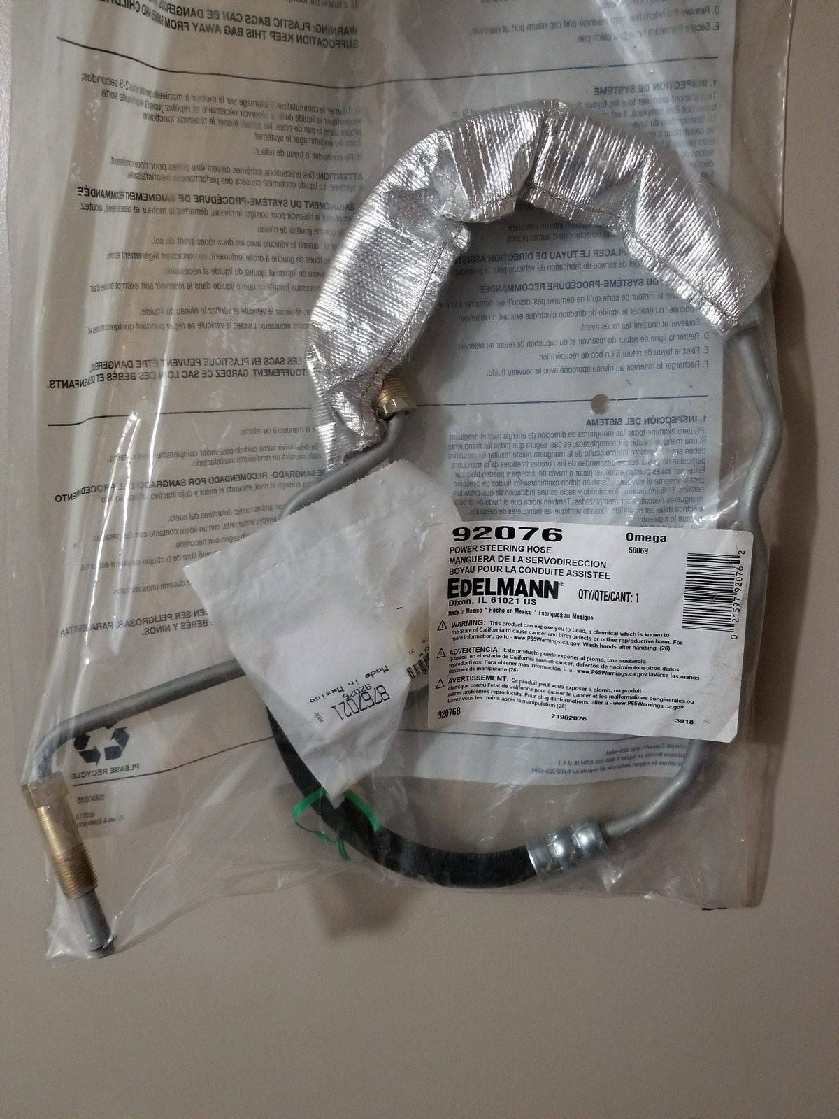 Genuine EDELMANN Power Steering Pressure HosePart# 92076 – NEW