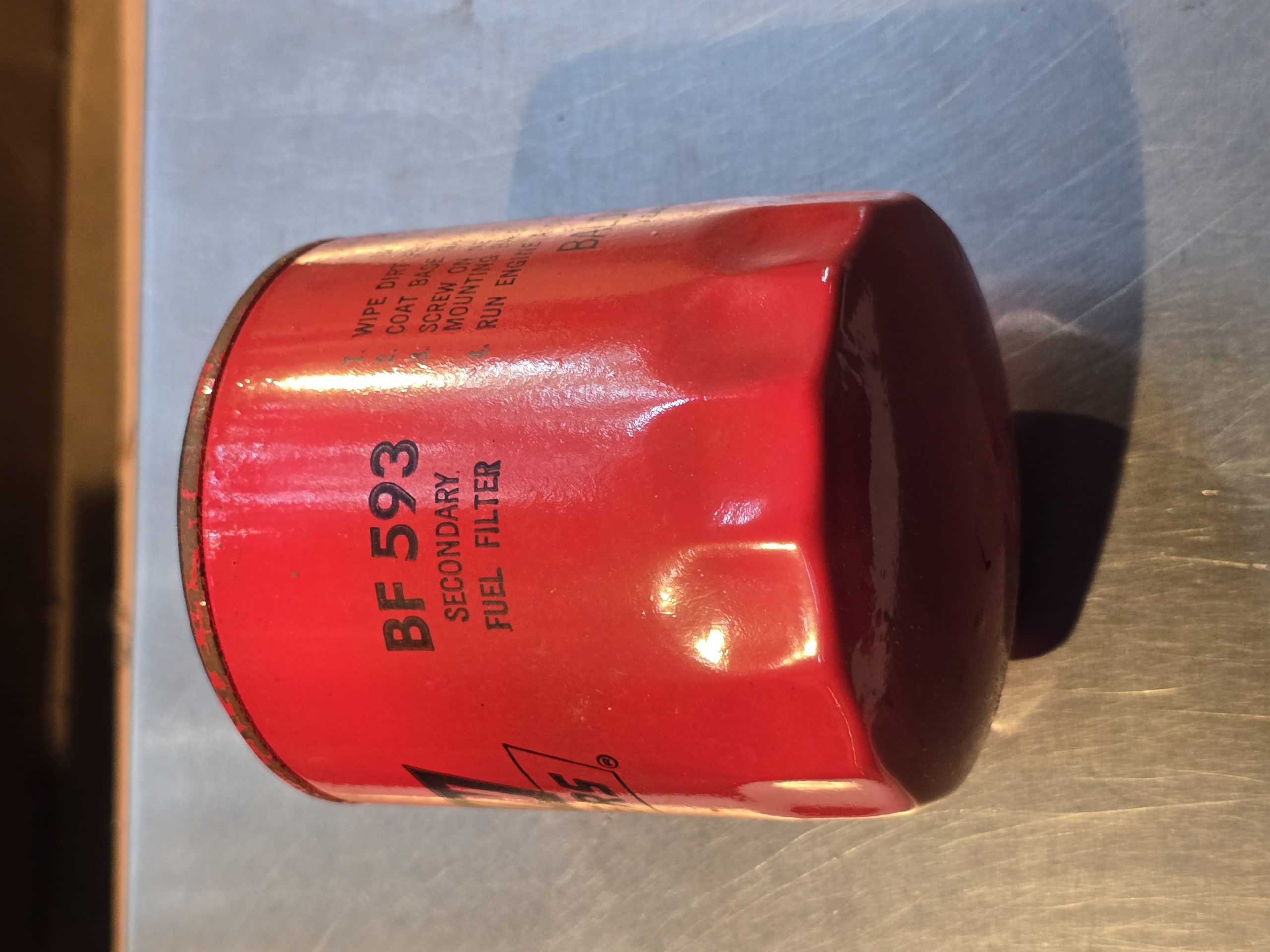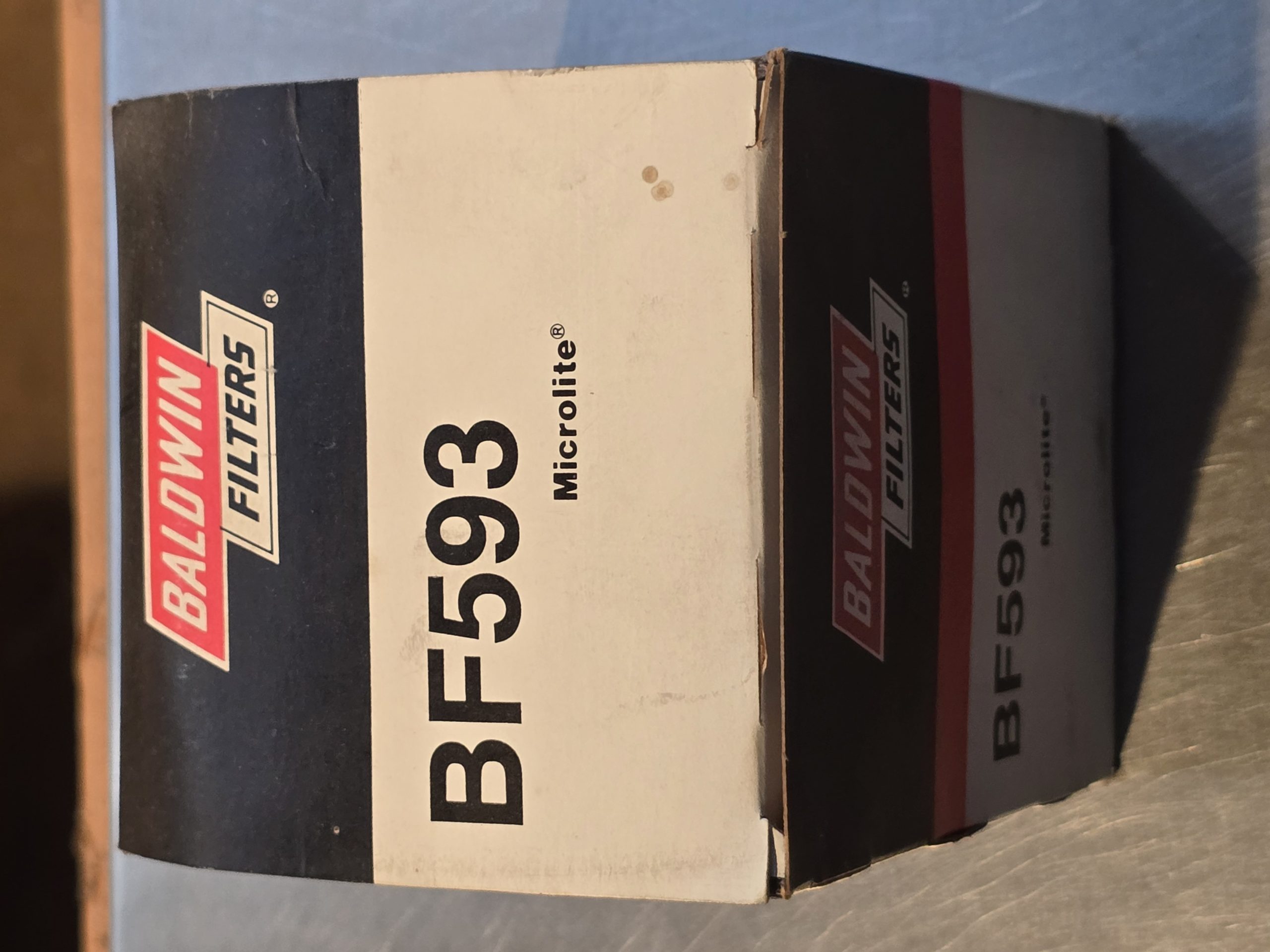 Listed is a NOS Baldwin BF593 Fuel Filter.