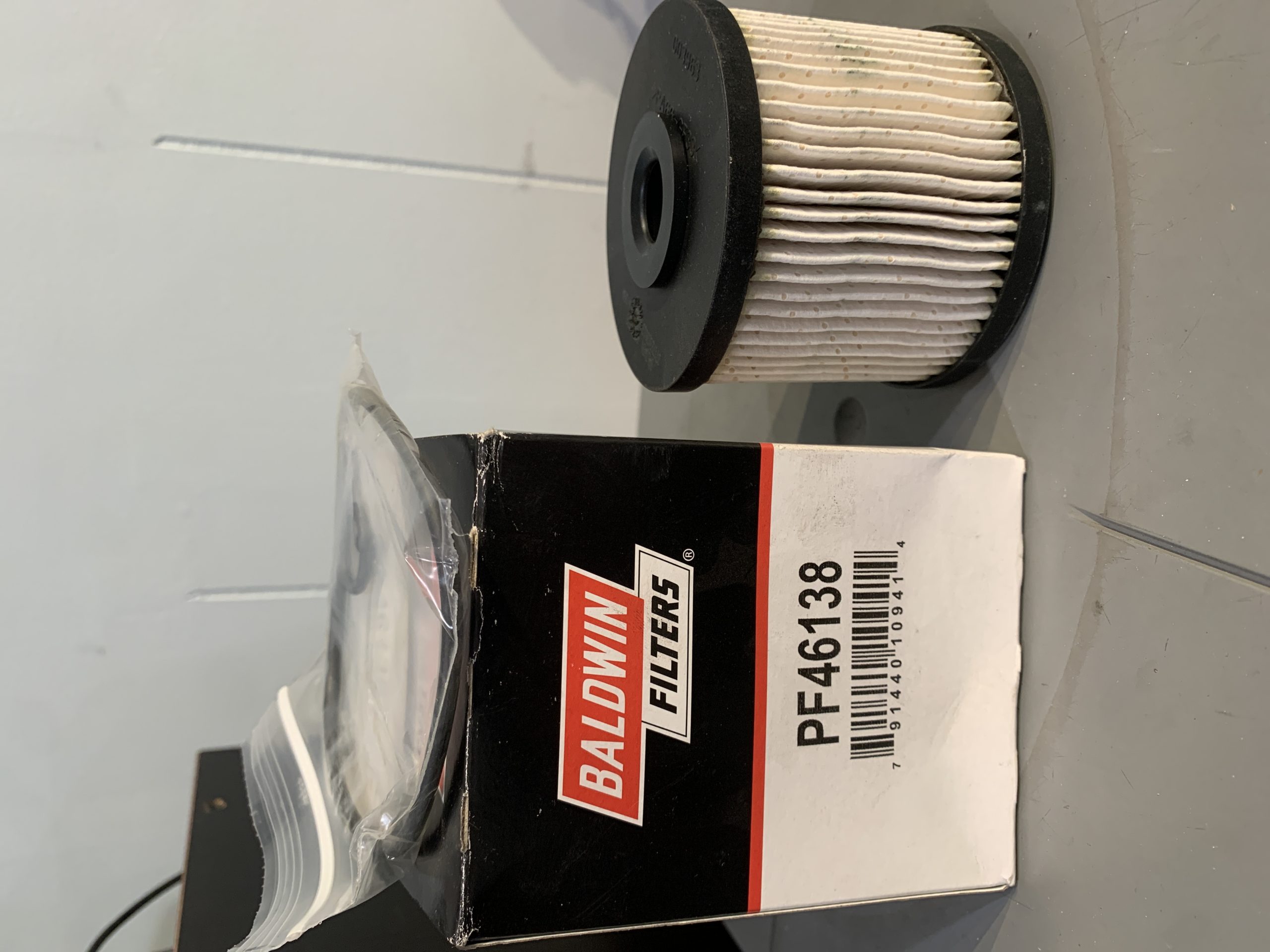 Listed is a NOS Baldwin PF46138 Fuel Filter.