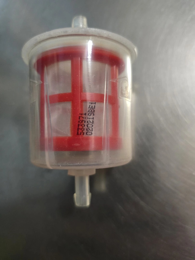 - “plastic universal in-line fuel filter w/ 1/4″” lines”